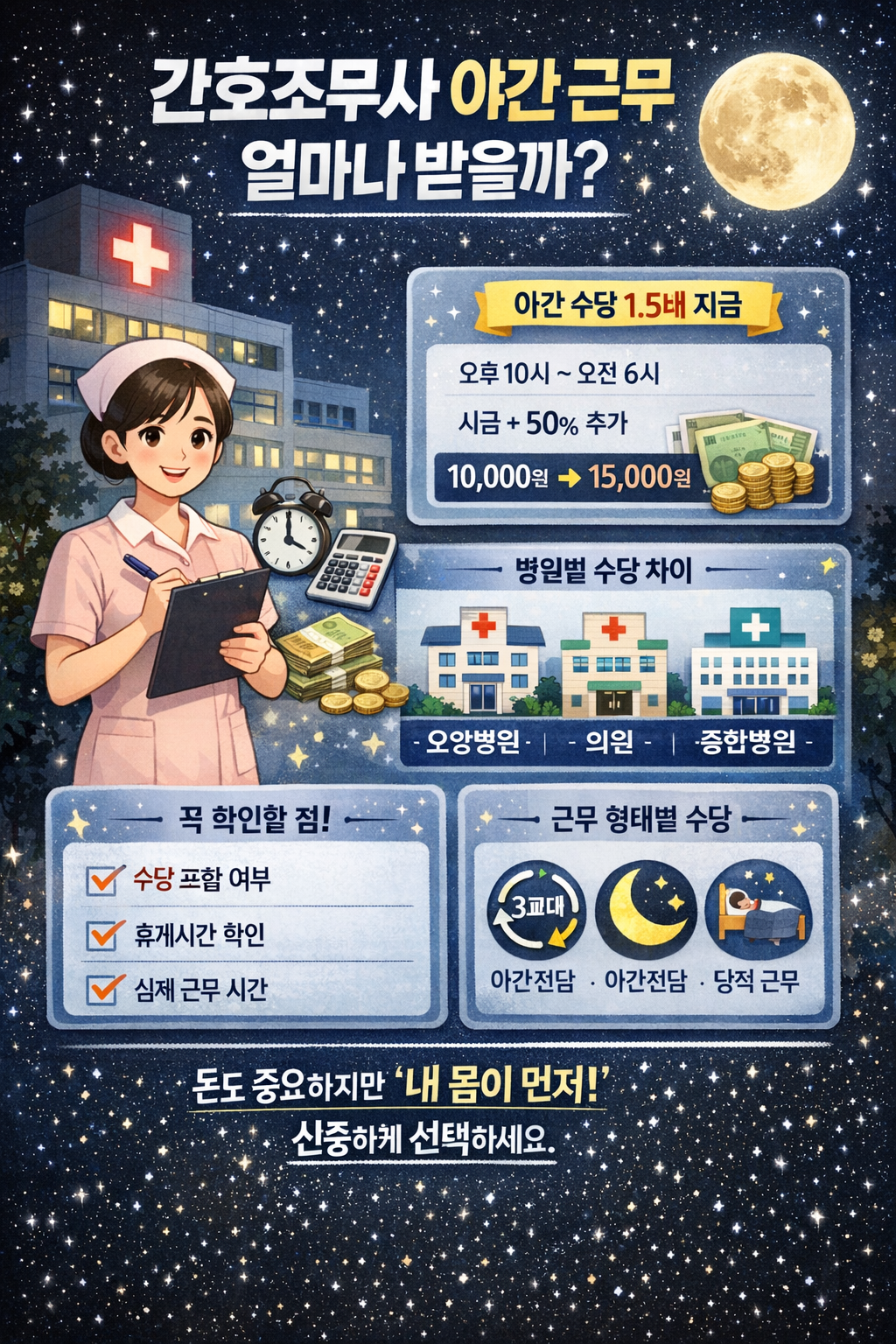오늘은 간호조무사 야간 근무 수당이 실제로 얼마나 되는지, 현실 기준으로 꼼꼼하게 정리해드리겠습니다.
