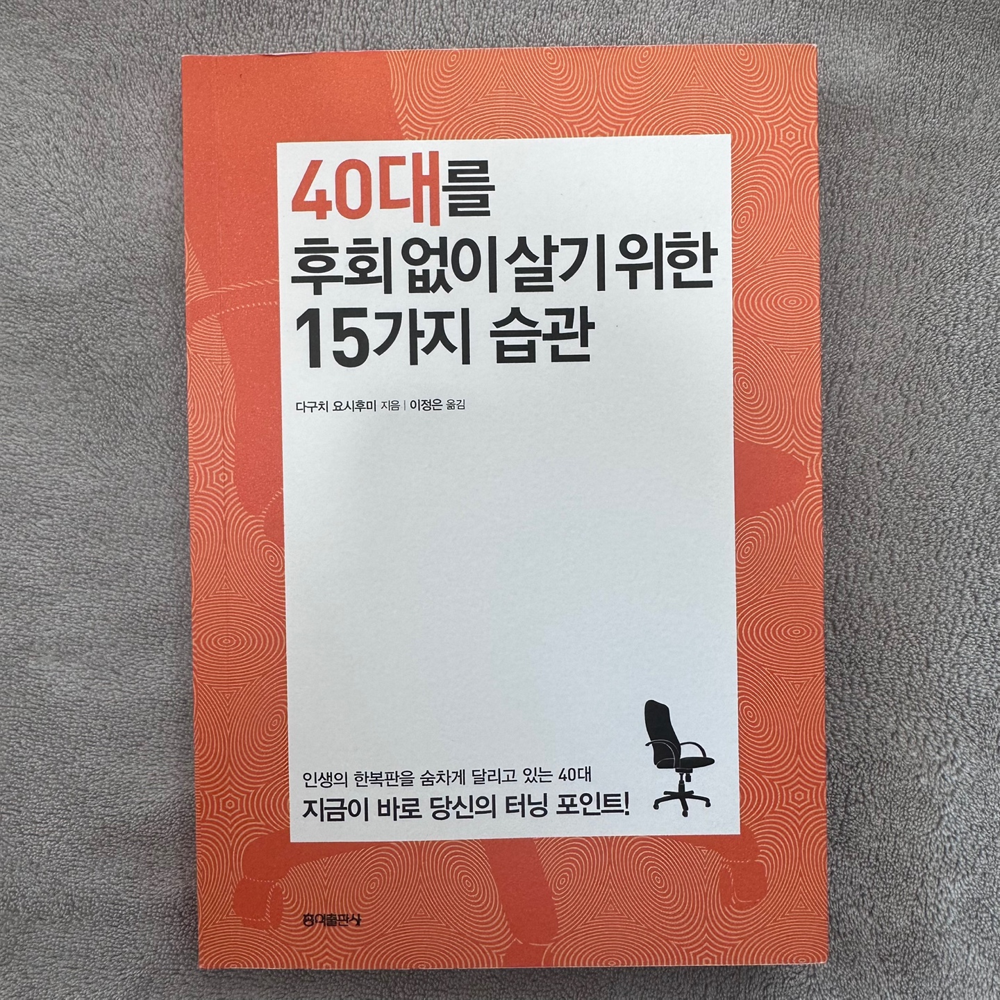 이 책은 40대를 맞이한 사람들이 후회 없는 인생을 살기 위해 필요한 삶의 태도와 실천 방법을 15가지 습관으로 정리한 자기 계발서이다.